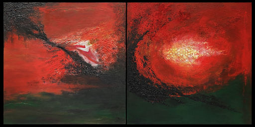 " Danseuse et photographe, Laura Lago s’initie à la peinture pour retrouver un corps-à-corps avec la matière. Démarche cathartique dans la continuité de son travail performatif, au-delà d’une expérimentation par le biais d’impulsions, ses tableaux témoignent de son appropriation de l’espace et de la matière : ce qui reste figé sur la toile atteste de ses états intérieurs dans l’atelier. Laura travaille le rouge en association avec le noir et nous renvoie à l’obscurité de la scène au préambule et à la fin d’une représentation, à la mort, à la chambre noire et aux secrets. "